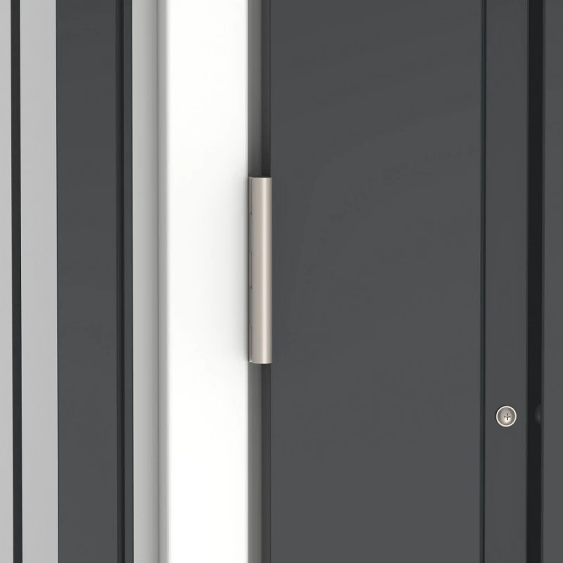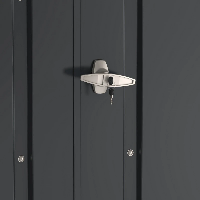 Pour un accès facile, l’abri à vélos en métal Duramax est équipé d’une double porte large de 167cm. La fermeture se fait à l’aide d’un système de verrouillage à 3 points ce qui évite la pose des serrures internes supplémentaires et assure la sécurité de votre contenu.