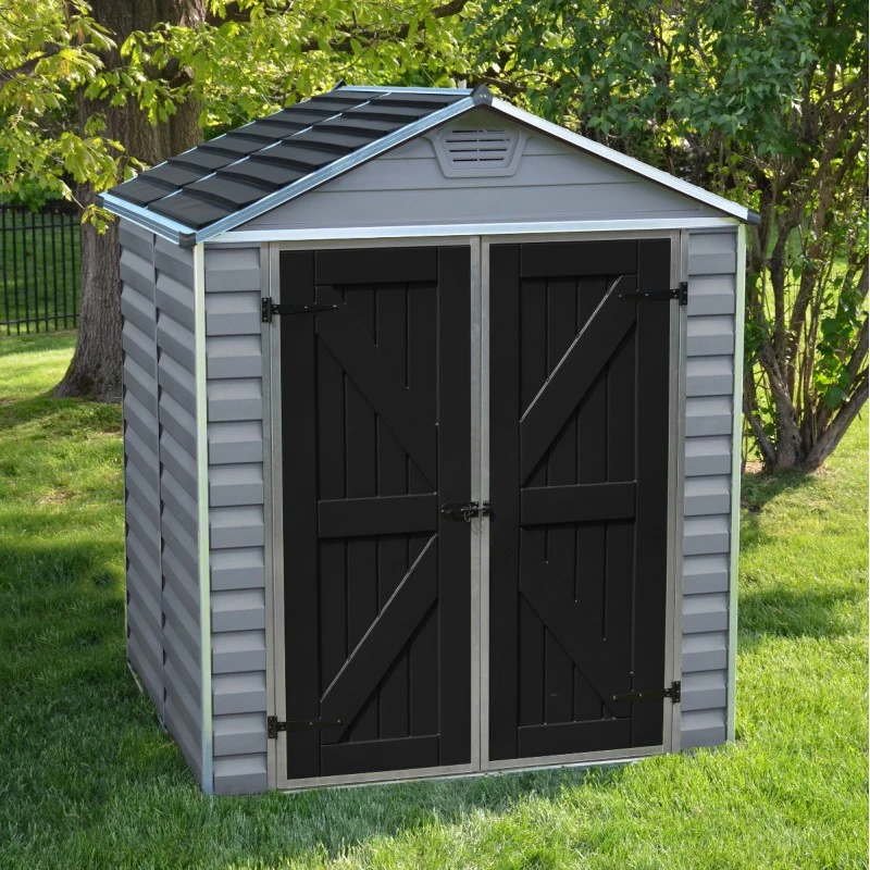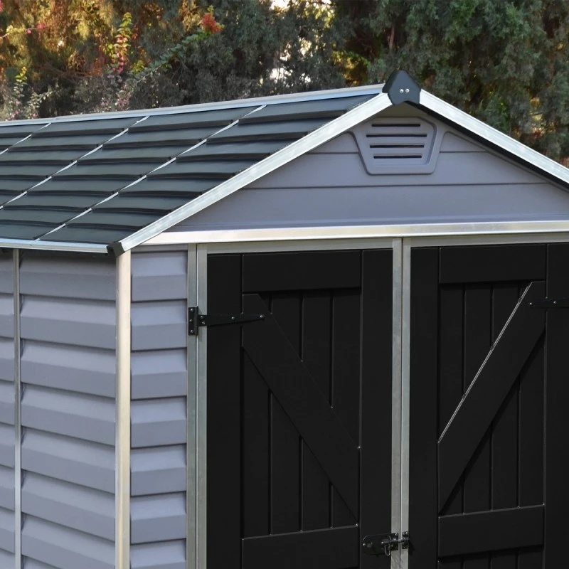 Les abris destinés au rangement du jardin, de la gamme Skylight Deco de Canopia by Palram combinent fonctionnalité et esthétisme, et cet abri de 2,65m² avec ses dimensions de 154x186cm vous ravira, avec ses tonalités de gris anthracite sombre pour le toit et la porte et gris clair pour les parois.