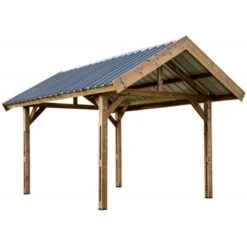 Carport-garage 7x5x2,5m En Bois Traité Autoclave Avec Porte Sectionnelle Motorisée – SOLID