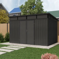 Abri De Jardin En Bois Composite 28mm Anthracite 12m² PREMIUM Toit Monopente – Woodlife Garden