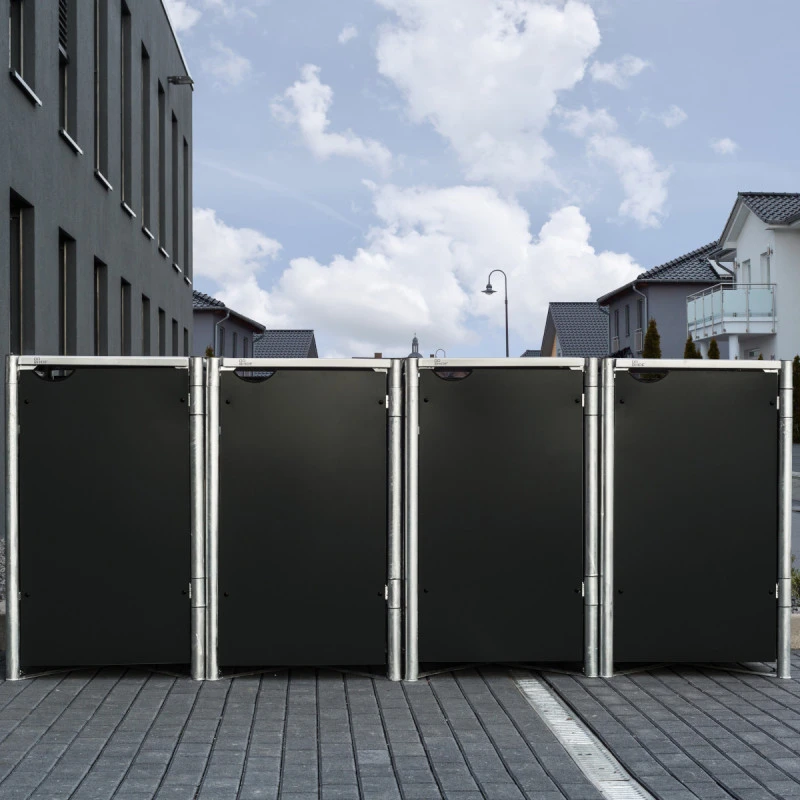 Cache-poubelle 4 Compartiments Müllbox En Aluminium Noir 4x240L – HIDE