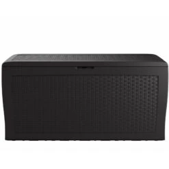 Idéal pour le rangement de conteneurs à déchets, pour des vélos, pour les outils de jardinage ou pour y dissimuler le matériel de filtrage de la piscine. Les cloisons épaisses de 22mm en PVC alvéolaire atténuent le bruit, et isolent des intempéries. Elles sont traitées anti-UV, ne craignent ni moisissure, ni insectes, et gardent un bel aspect durablement. L’entretien du coffre de jardin Garofalo consiste à un lavage avec une solution détergente légère, suivi d’un rinçage à l’eau froide.