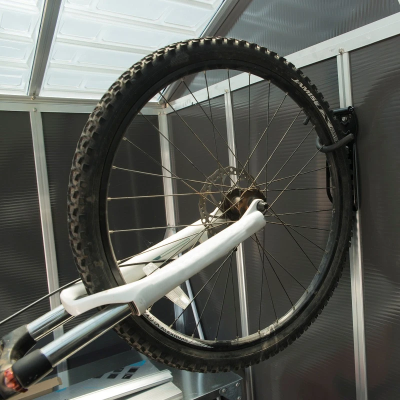 Facile à monter, le porte-vélo vertical peut supporter jusqu’à 25kg et il est adapté aux VTT à roues de 14ʺ à 29ʺ. Spécialement conçu pour les abris et garages Yukon, Skylight et Rubicon de Canopia by Palram.